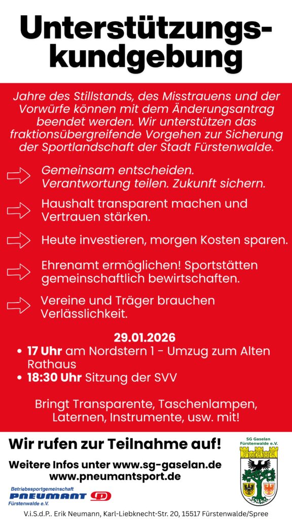 Es geht nicht um einzelne Vereine oder einzelne Sportarten – es geht um den Sport in Fürstenwalde insgesamt.