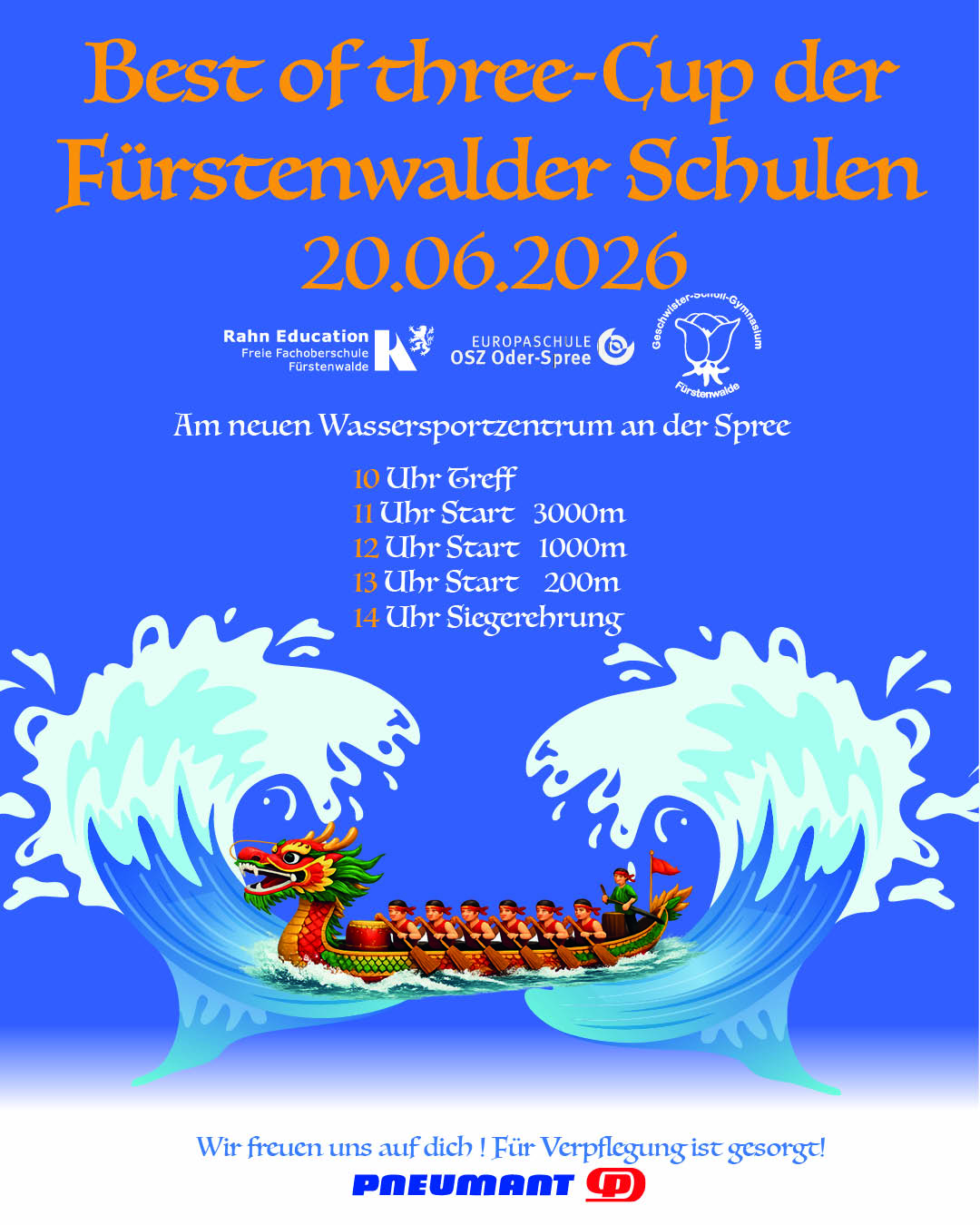 Bei dem „Best of three-Cup“ der Fürstenwalder Schulen am 20.06.2026 treten die Rahn Schule, das Geschwister Scholl Gymnasium und das OSZ Oder Spree gegeneinander an, um ihr Können unter Beweis zu stellen und den Titel zu sichern.