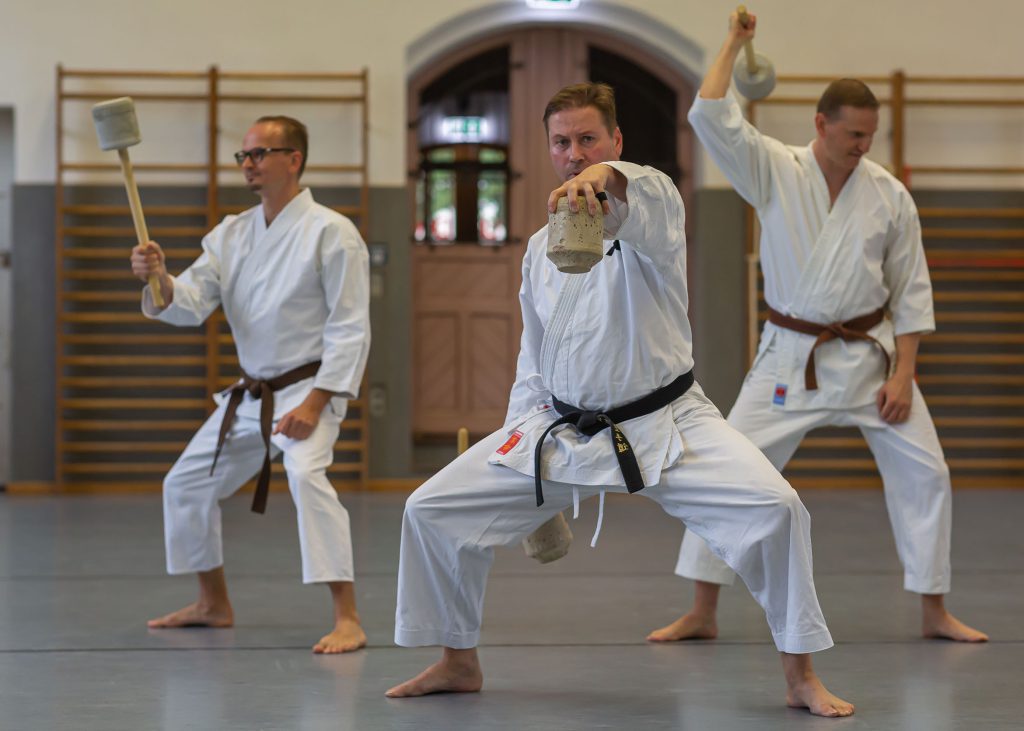Es gibt drei essentielle Bestandteile des Karatetrainings, neben weiteren Trainingsmethoden, diese Trainingsformen sind: Kihon (Übungen der Grundtechniken), Kumite (Partnerübungen) und Kata (Übungsform komplexer Bewegungsabläufe, die den Kampf gegen einen imaginären Gegner darstellen), welche bei uns im Karatetraining durchgeführt werden. Karate ist nicht nur eine gute Möglichkeit zu Lernen sich selbst zu verteidigen, sondern auch seinen Körper auf lange Sicht gesund zu erhalten. Unsere Karateabteilung hat sich dem traditionellen Karate verschrieben, integriert aber im Training ebenfalls moderne etablierte Wettkampfmethoden und unterstützt auch gerne Wettkampfinteressierte, die an Wettkämpfen teilnehmen möchten oder sich bereits angemeldet haben (in Angelegenheiten, die den Wettkampf betreffen, bitte die jeweiligen Trainer vor Ort kontaktieren).